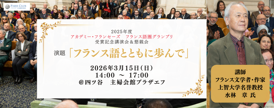 - 2026年3月15日アカデミー・フランセーズ フランス語圏グランプリ受賞記念 水林 章氏講演会&懇親会「フランス語とともに歩んで」ご案内