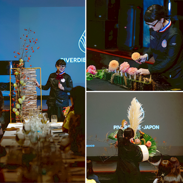 締めくくりには、PIVERDIERE JAPON校長・細野里香氏によるデモンストレーションが行われ、生け花とフランスフラワーアレンジメントを融合させた作品が披露されました。